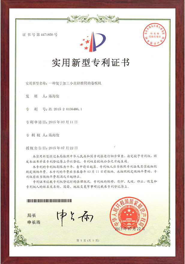 一種便于加工小直徑錐筒的卷板機(jī)專利